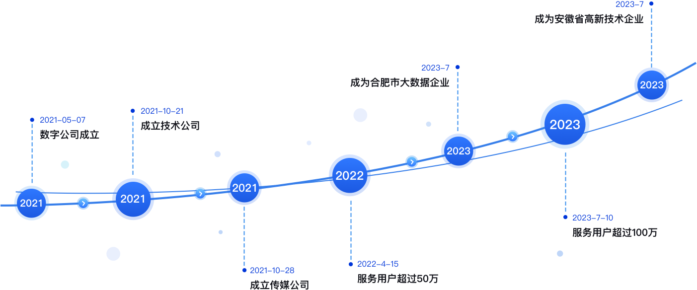 公司于2021年5月份成立,目前主要負(fù)責(zé)智慧肥西政府端及居民端建設(shè)、干事檔案開發(fā)、廣告位管理等項目的代建及運營工作,并于2021年11月分別組建了軟件類和傳媒類全資子公司。