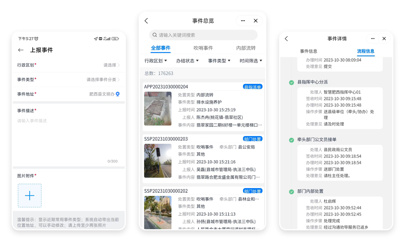 中期:對事件進展進行全局性跟蹤,建立節(jié)點可視化展示平臺。在每個事件的詳情中可查看每個節(jié)點辦理進度和詳情,對事件流轉的各個階段實現可視化。建立審核機制,由內部后臺、到縣指揮中心、再到多級部門,層層過關的審核機制確保問題反饋的暢通和事件處理的妥當。建立超期預警機制。對每個事件設置辦結時間,系統(tǒng)自動短信通知即將逾期的責任人,督促辦理或者申請延期,確保事件落實辦結。針對平臺上報的難以解決的問題,縣委不定期召開專題調度會,及時幫助解決事件歸屬、協(xié)調、責任等方面存在的問題,為事件落實辦結保駕護航。